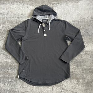 BYLT Hoodie Shirt Mens Large Drop Cut L/S Hooded Henley Lux Gray Cotton