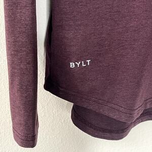 BYLT MEN'S SNOW WASH DROP CUT LONG SLEEVE TOP SIZE L. Long sleeve, crew neck. logo. polyester/cotton/ spandex . Maroon color.Pre-owned great condition. pit to pit 22", length 31.5"