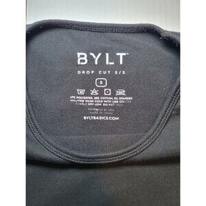 This BYLT Drop Cut T-Shirt in size Small is a luxurious addition to any wardrobe. The solid Black color and classic crew neck make it a versatile choice for any occasion. The shirt is made of a comfortable blend of polyester, spandex, and cotton, and features easy care, preshrunk, stretch, all seasons, tagless, and wrinkle resistant features.
