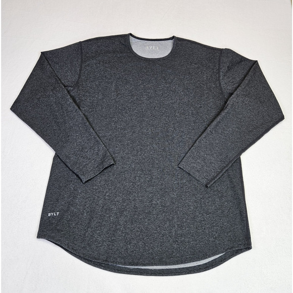 BYLT Mens L Premium Basic Drop Cut Lux Tee Long Sleeve Gray Athleisure Casual