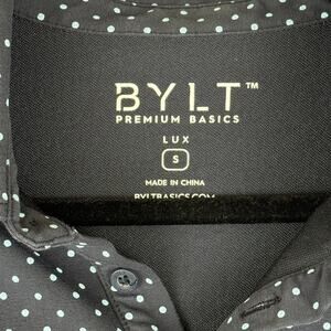 This BYLT Premium Basics LUX polo shirt is a fantastic addition to your wardrobe! Featuring a stylish navy/blue polka dot pattern, this short sleeve polo is perfect for a smart-casual look. It's in great condition with no stains or tears. Get ready to elevate your style with this comfortable and fashionable polo!