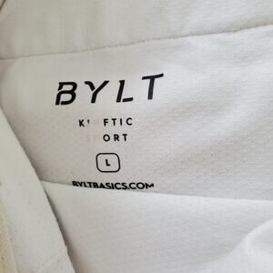 Details: Minimal BYLT branding with B logo button and logo tag at back pocket