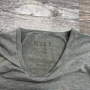 BYLT Pin stripe Gray Green Men's Large Short Sleeve Crewneck Lightweight Casual T-Shirt horizontal stripes curve hem preppy shirt,