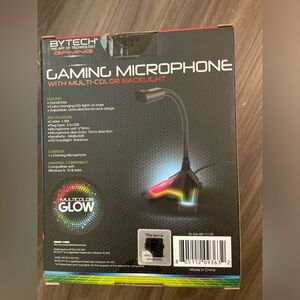 Enhance your gaming setup with this BYTECH microphone. Features multicolor backlight for a vibrant look. Omnidirectional for clear sound capture. Hands-free design for convenience.