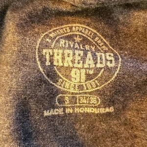 BYU navy shortsleeve t-shirt. 60% cotton, 40% poly for easy care. Spelled out on front in white letters BRIGHAM YOUNG UNIVERSITY, COUGARS in gray with white outlined letters, then the Y logo.