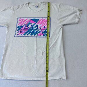 BYU Cougars Vintage 90s T-Shirt Jazz Design Logo Pink Teal Size L White