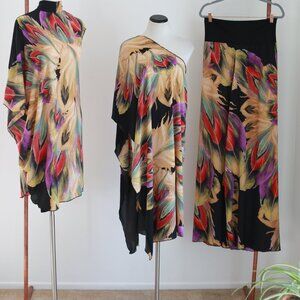 I bought it with high hopes, and while the print and craftsmanship are lovely, I could never get it to work on my petite, nearly shoulderless frame. The garment works as either a one-shoulder tunic, a one-shoulder dress on a very short person (like myself), or as a capelet. I've seen tons of people make it sing. But alas! I was not one of them.