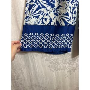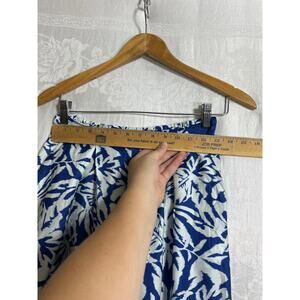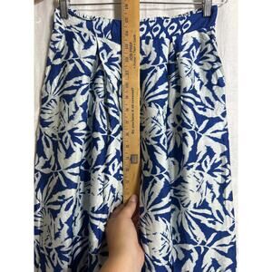 B.Yu Palazzo Pants Small Blue White Geometric Print Extra Wide Leg Satin Silky