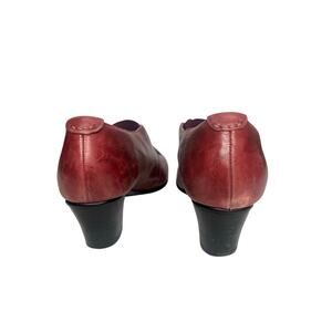 BZ MODA Leather Bootie Mid Heel Round Toe Burgundy Womens EU 36.5 US 6 UK 4.5