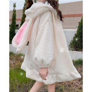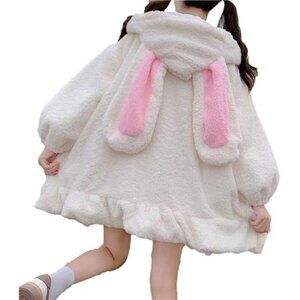 BZB Kawaii Anime Bunny Ear Hoodies For Women Sweet Lovely Fuzzy Fluffy Rabbit
