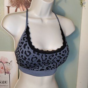 BZB Lace Leopard Print Seamless Wirefree Bralette Camisole Removable Padding