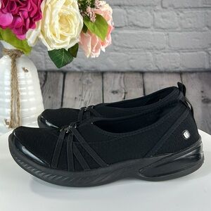 BZEES Black w/Sliver Hardware Slip On Orthotic Arch Support Cushioned Flats