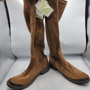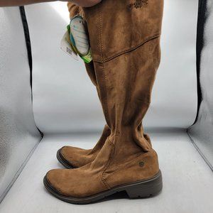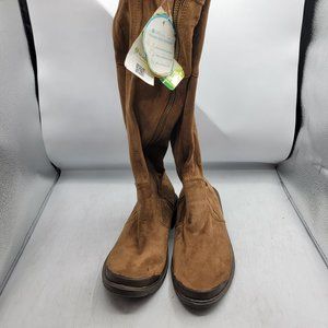 BZEES Boomerang Womens 6 Brown Boots Block Heel Top Drawstring Zip Casual