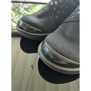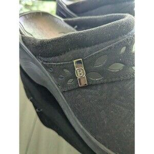 BZEES Clogs Women's sz 6 Gray Black Knit SlipOn Dolly Mule PlatformWedge Comfort