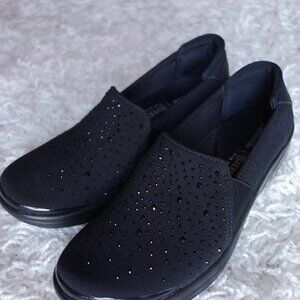 Sprinkle a little extra style into your mix with the Poppyseed women's slip-on sneaker from Bzees. This Dynamic Stretch fabric upper promotes free and natural movement and features dazzling rhinestone accents to jazz up any outfit. Its SoCush Memory Foam provides arch support and BZEES Cloud Technology adds a layer of cushiness. With built-in anti-microbial and odor control and machine washable features, this sneaker stays fresh and new with each step.