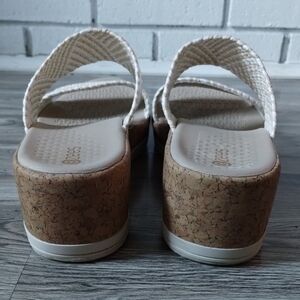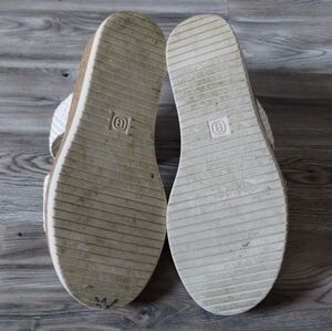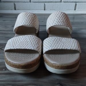 BZEES Resort Platform Slide Sandal In White Raffia Fabric Women's Size 8.5
