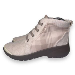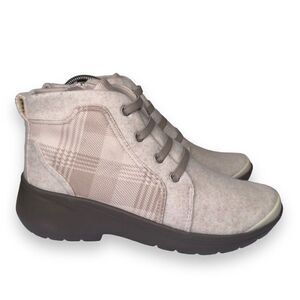 BZEES Kick Back Lace Up Ankle Boots "Taupe Plaid" Women's 7.5M