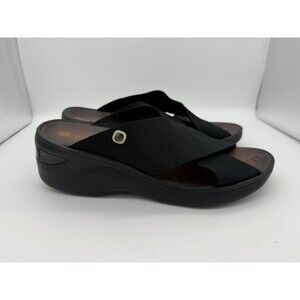 BZees 2.5" Sandals Womens 9 Desire Wedge Slip On Stretch Vacation Travel Beach