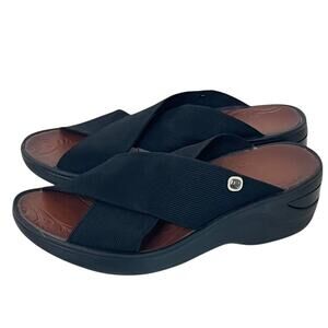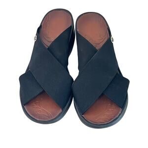 BZees Desire Wedge Slide Sandals Womens Size 8.5 Black Fabric Upper