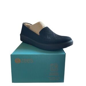 Move to the Bzees March On in this light, super-comfy, machine-washable women's slip-on shoe with a colorful chevron print. Stretch engineered knit upper with round toe. Slip on fit. Zigzag chevron pattern and back pull tab. BLOOM™ materials: Algae-infused foam layer under the insole. BZEES Cloud Technology: Designed so you'll feel weightless, energized and free. Air-Infused Outsoles: Bzees are ultra-lightweight, soft, and bouncy. Dynamic Stretch Uppers: Stretch fabrics move and groove with you. Free-Foam Footbeds: Crazy-cushy anatomical insoles. DreamPuff: microfiber heel padding that hugs your ankle for a secure fit. SoCush Memory Foam arch support. Odor Control technology. 1.5-inch heel. Machine Washable: Wash on cold and air dry.