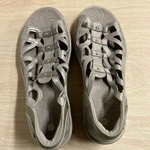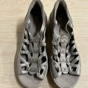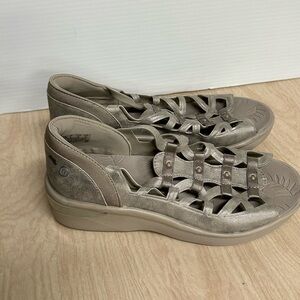 BZees Womens Sasha Casual Comfort Slip On Wedge Heels Sandals Gray Size 10W