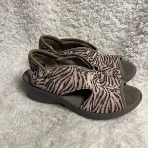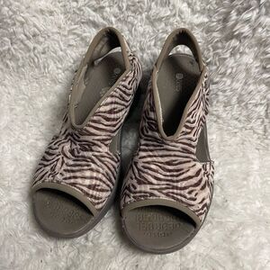 BZeesDream Zebra Print brawn & Beige washable wedge sling back Sandals SZ10W