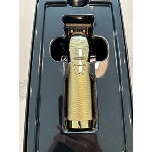 Introducing the BaBylissPRO FX+ Professional Barber Cord/Cordless Hair Trimmers, featuring the new GOLDFX+ All Metal Lithium Trimmer. Brand new with minor dings in the case, this trimmer boasts upgraded features for superior performance. Equipped with a dual bearings N1 brushless motor, it operates at 7200 RPM/14,400 SPM for enhanced efficiency and long life. The high-performance lithium ion battery offers up to 4 hours of cordless runtime, perfect for extended use in professional settings. The trimmer includes a gold/DLC titanium standard tooth T-blade (FX707Z), zero gap adjustable for precision cuts. Built with a durable all metal housing and a knurled barbell grip, it features a detent hanging hook and a new USB-C charging port for convenience. BaBylissPRO sets the standard with high-performance, durable styling tools trusted by professionals worldwide.