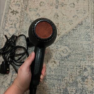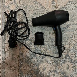 Powerful things come in small packages sometimes, like with this compact hair dryer equipped with a long-life AC motor and a built-in ion generator. This blow dryer also has an ergonomic handle with recessed switches: 2 speed and 3 heat setting plus a cool shot button.