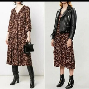 Ba&SH Tracy Animal Leopard Print Ruffle Tiered Midi Dress(XS)