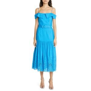 Ba&Sh Animal Print Brown Midi Length Dress Size L: animal print, ruffle embellishment, three-quarter sleeve with v-neck, sash-tie closure at side.