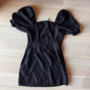 Ba&Sh Bash Mini Dress Women L Viscose Linen Puff Sleeve Square Neck Cut Out Back