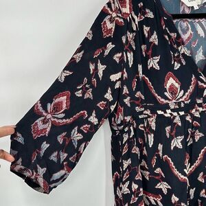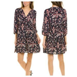 Ba&Sh Boho Blue Calix 3/4 Sleeve Pleated Tunic Mini Dress Small