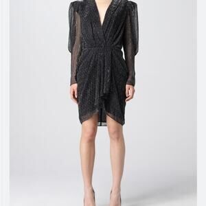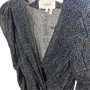 Ba&Sh Celia Black Ruffle Velvet Dot Cocktail Party Dress, Edgy, Dark, Goth, XS