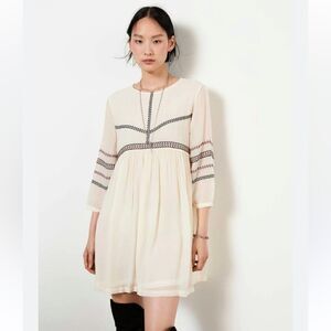 Ba&Sh Colombe Embroidered Boho Mini White Shift Dress Long Sleeve Size M