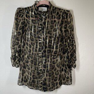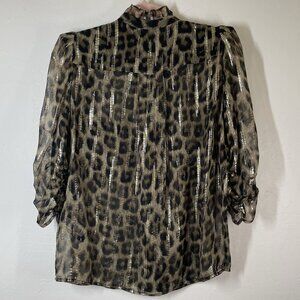 Ba&Sh Sheer Silk Leopard Metallic Blouse Top High Neck Brown Gold Size S (2-4)