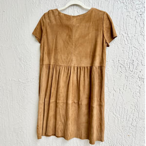 Ba&Sh Short Sleeve Goat Suede Leather V-Neck Mini Dress Beige Women's 2 / Medium