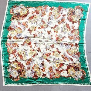 Baar & Beards Top Hit Vintage Made in Japan Hand Rolled Pure Silk Floral Scarf in Cream Green Yellow Orange Brown.