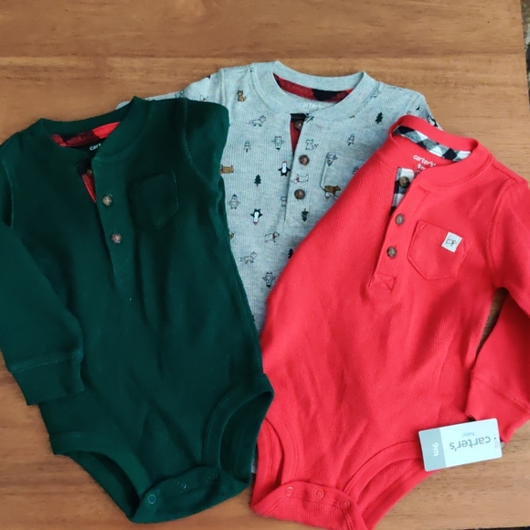 Three piece baby boys long sleeve thermal onesies size 9 months