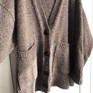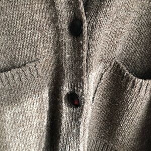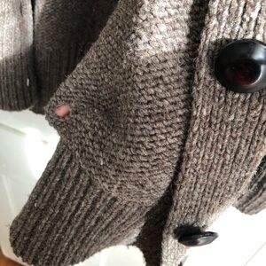 Men’s no. 17 cardigan sweater. Very good condition with minor piling, small hole in bottom left pocket. Length is 32 inches