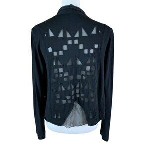 Babakul Black Cardigan Medium Open Front Silk Viscose Cutout Back Geometric