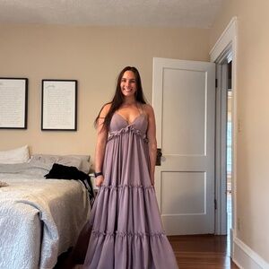 Babaroni bridesmaid/ formal dress. Never been worn! Empire waist, beautiful chiffon fabric, and fun boho vibe. Gorgeous dusk color; slightly more purple than pictured on their website. Size 8. Bought for $110. Make me an offer!