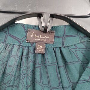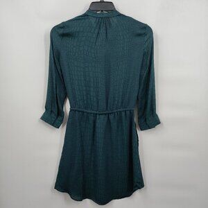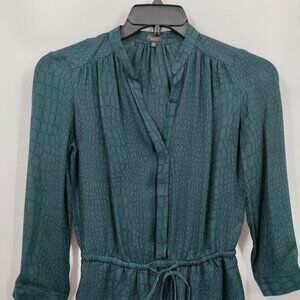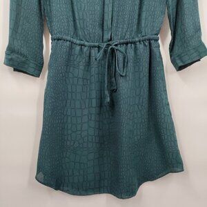 Babaton 100% Silk Animal Print Long Sleeve Button Down Shirt Dress XXS Green