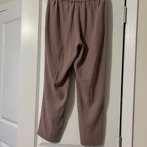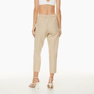 Babaton Cohen Cropped Pants. Known as a classic staple for Aritzia for a reason. Mid-rise trousers with an elastic waist and classic fit. Made with soft stretched fabric. Straight leg. Intended to hit around mid calf, cropped style. Taupe in color.