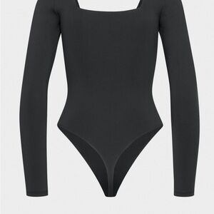 A cult classic for a reason. This is a squareneck longsleeve bodysuit with a thong-cut bottom and double-layer fabric for a smooth, supportive fit. It's made with Babaton's signature Contour — luxe, ultra-flattering fabric coveted for its smoothing effect and second-skin feel. Essential for every body. Hidden Hold Loops keep your bra straps in place and out of sight.
