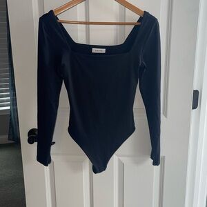 Babaton ARITZIA Contour Squareneck Longsleeve Bodysuit Black Square Thong Back M
