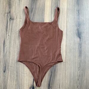 Babaton Aritizia Square Neck Contour Bodysuit Size Large One-Piece Coffee Brown