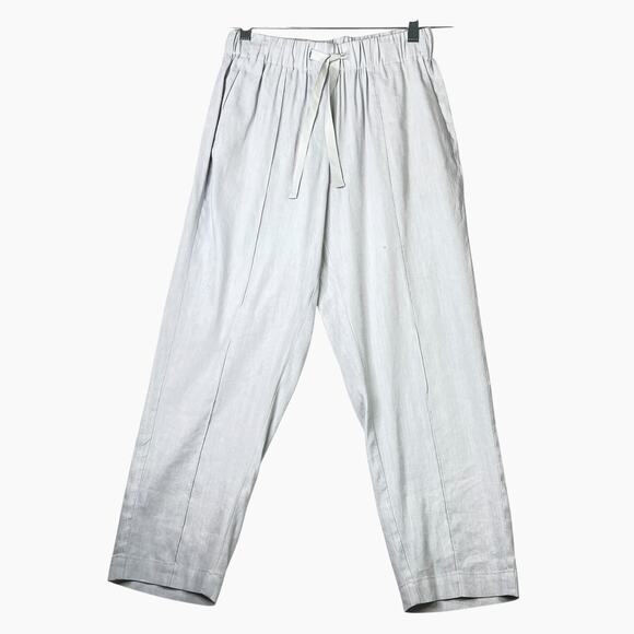 Babaton Aritzia Day Linen Pants Blue S Drawstring Waist Straight Leg Casual Crop