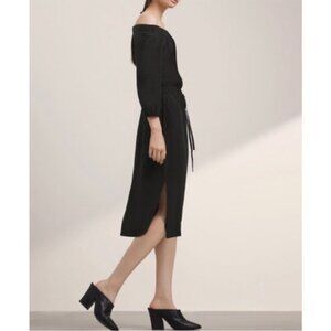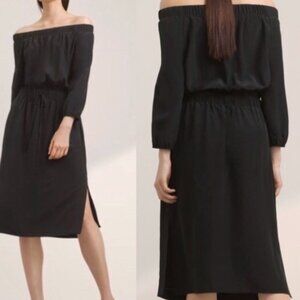Elasticized neckline can be worn off shoulder waist and sleeve cuffs