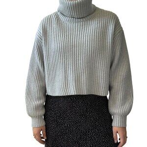 Babaton Aritzia Light Gray 100% Merino Wool Cropped Chunky Ribbed Sweater Sz M