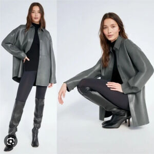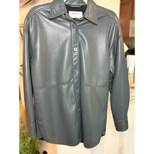 Babaton Aritzia Olive Green Pelli Oversized Button Front Shirt Jacket XS
